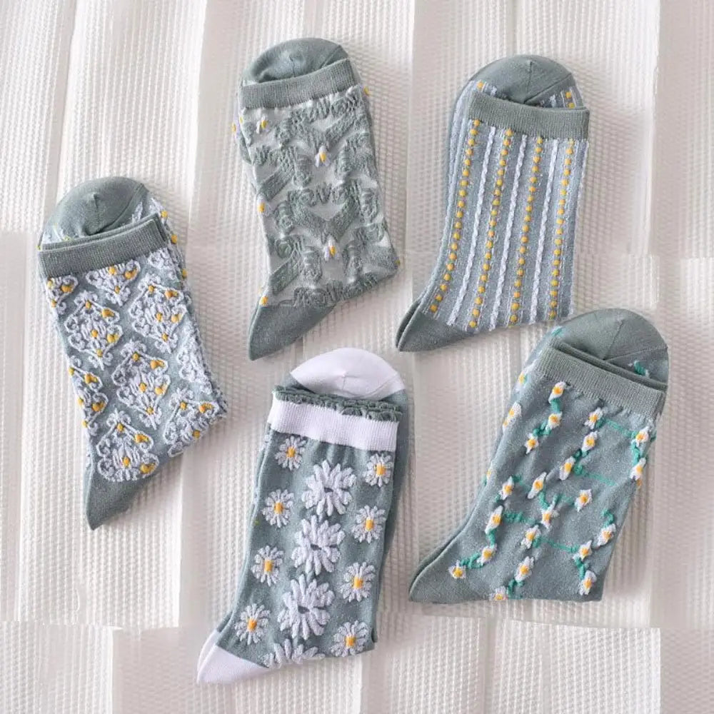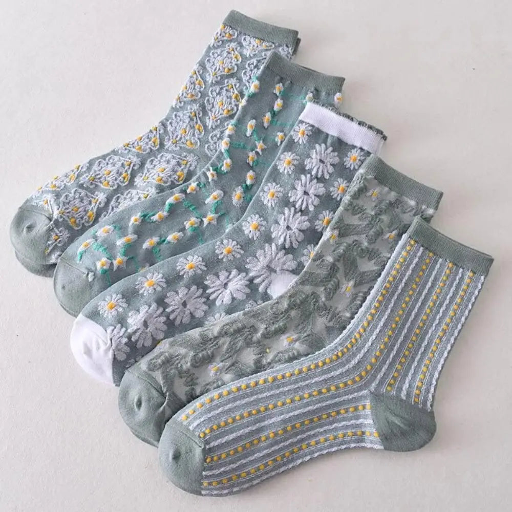 Wrap your feet in a gentle touch of calm with these sky-blue socks. Their soft knit feels light and cozy, perfect for everyday wear. A delicate floral design adds a feminine, timeless charm to your look